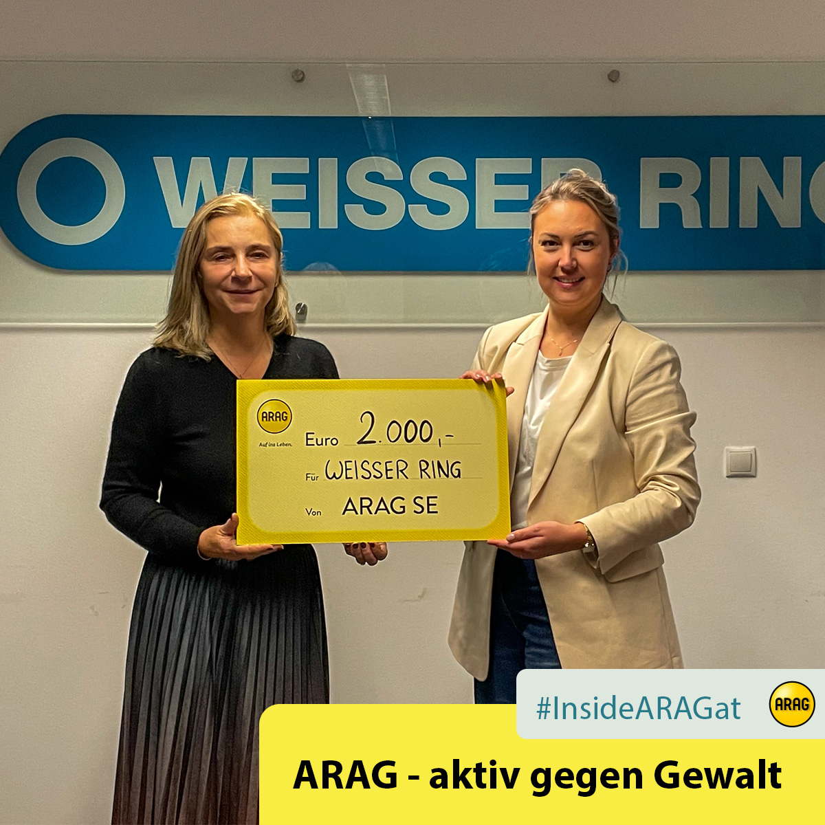 Wir haben das Projekt gemeinsam mit dem WEISSEN RING gestartet. Uns ist eine gute und dauerhafte Partnerschaft wichtig, darum unterstützen wir auch dieses Jahr mit EUR 2.000, - die wichtige Arbeit des WEISSEN RINGES in der Opferhilfe.